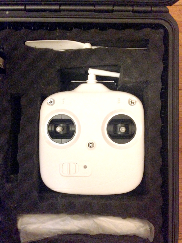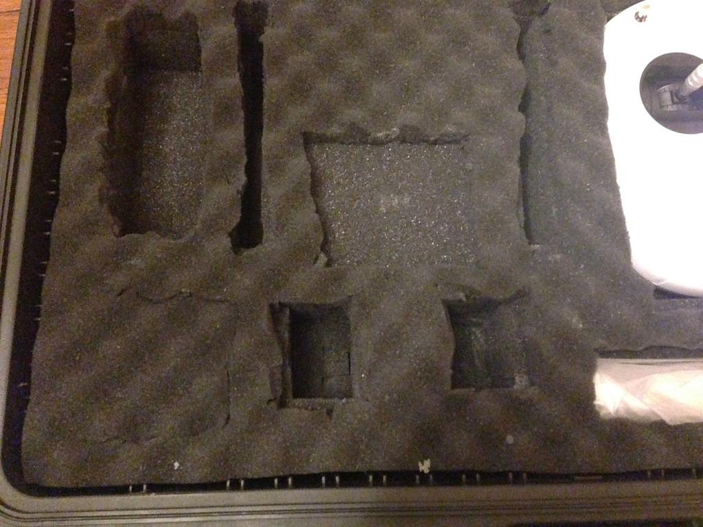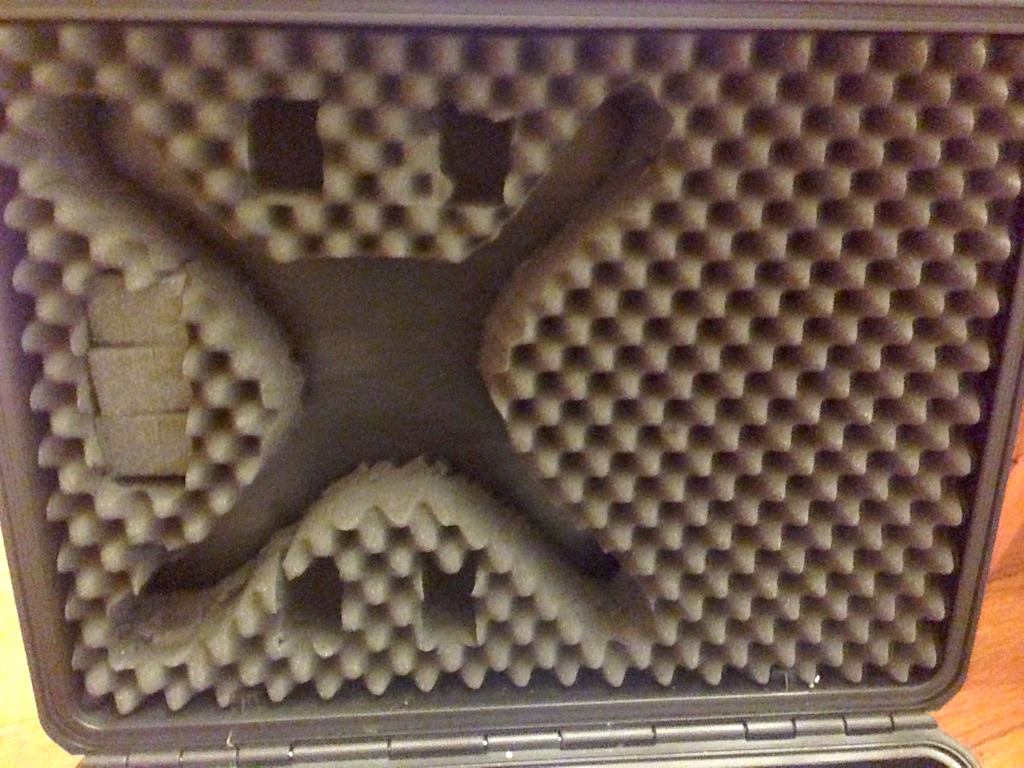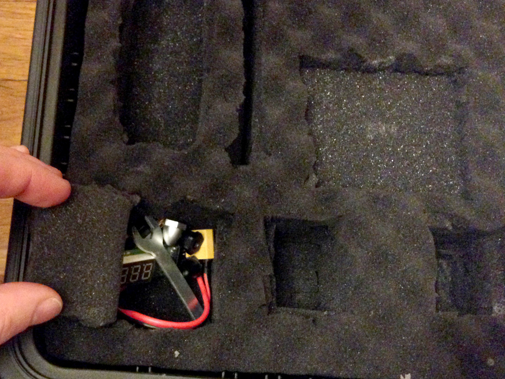Case right showing two propeller areas and the radio. Note that the radio should really be the other way round with the antenna towards the front - as it is now it looks natural but when you close the case and lift it the antenna is pointed downwards. This has the effect of pushing it into the foam between it and the propellers and lifting the foam