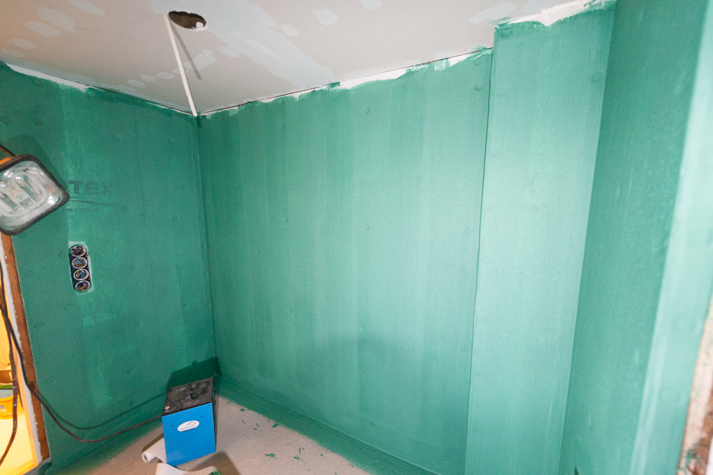 Second layer of the liquid membrane. If I understand them right that means that tile laying can start tomorrow.