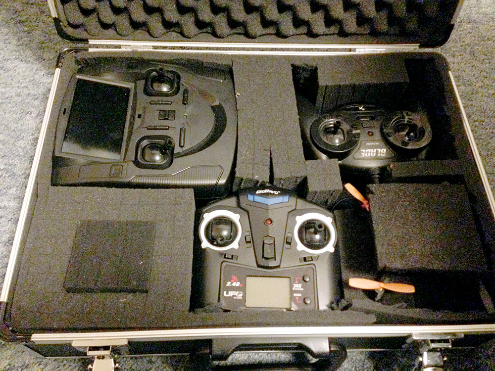 Foam layout showing the third layer of packingFinally the last foam bits go in - covering the battery/charger area and a small piece to keep the el-cheapo quad from moving around too much.