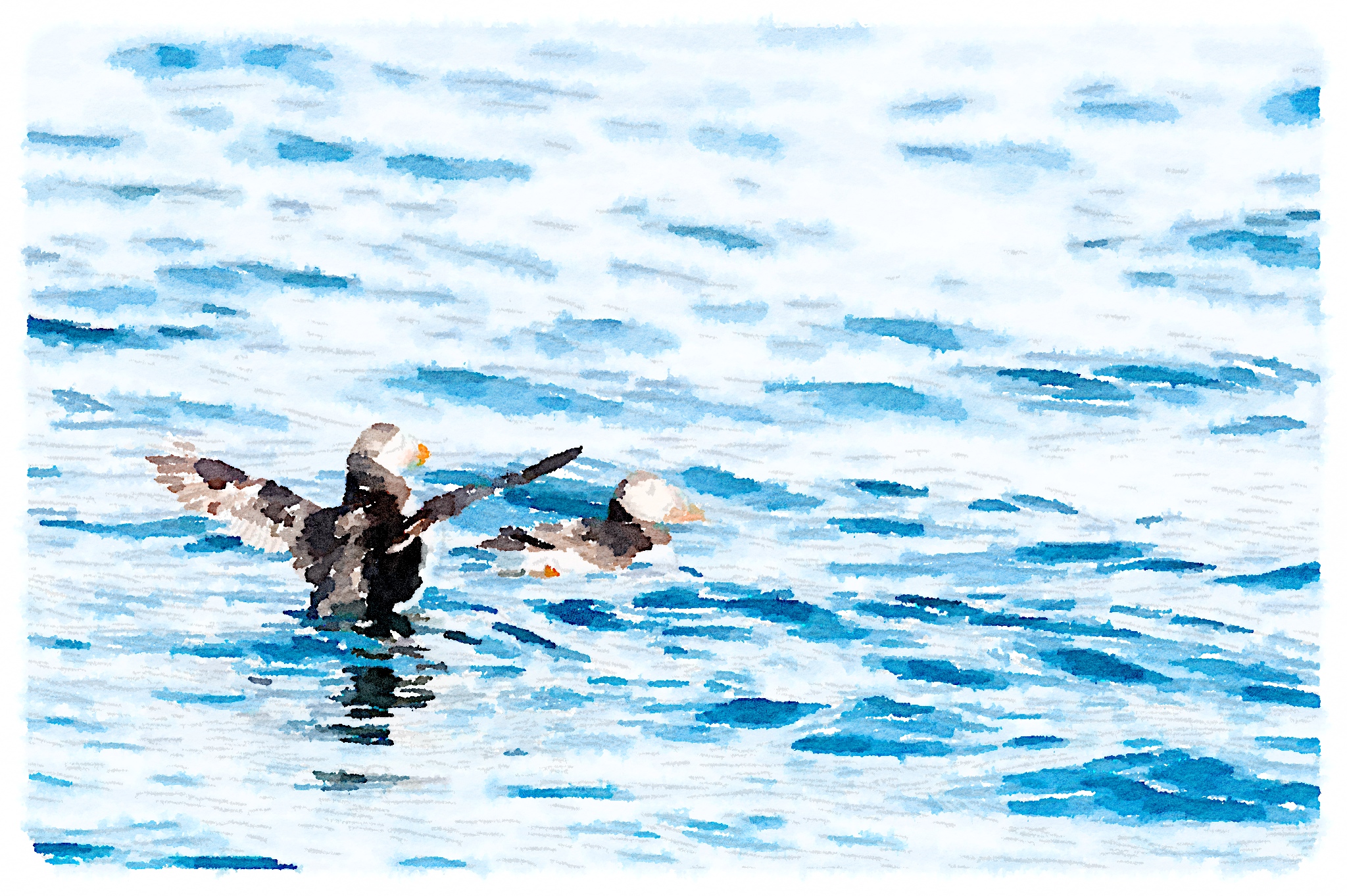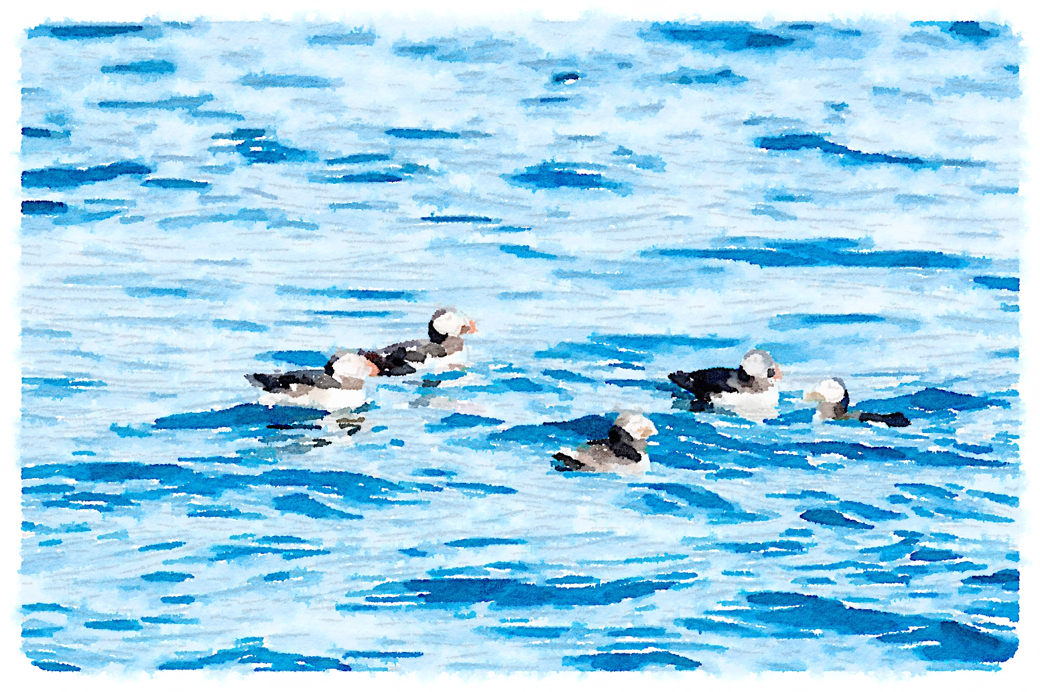Puffins on the water