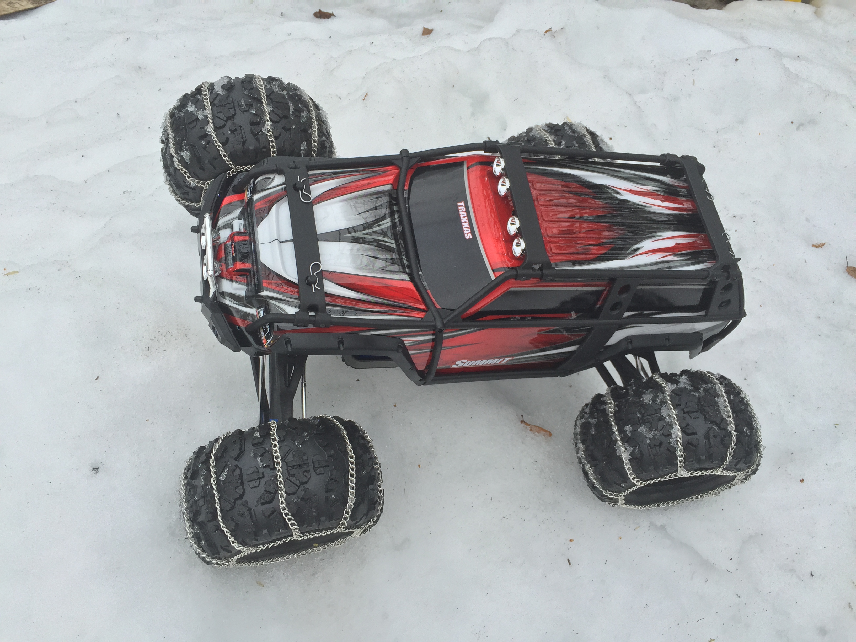 Snow chain completeFinally they need mounting - I've currently using proline rock rage 3.8" wheels - so here they are mounted.
