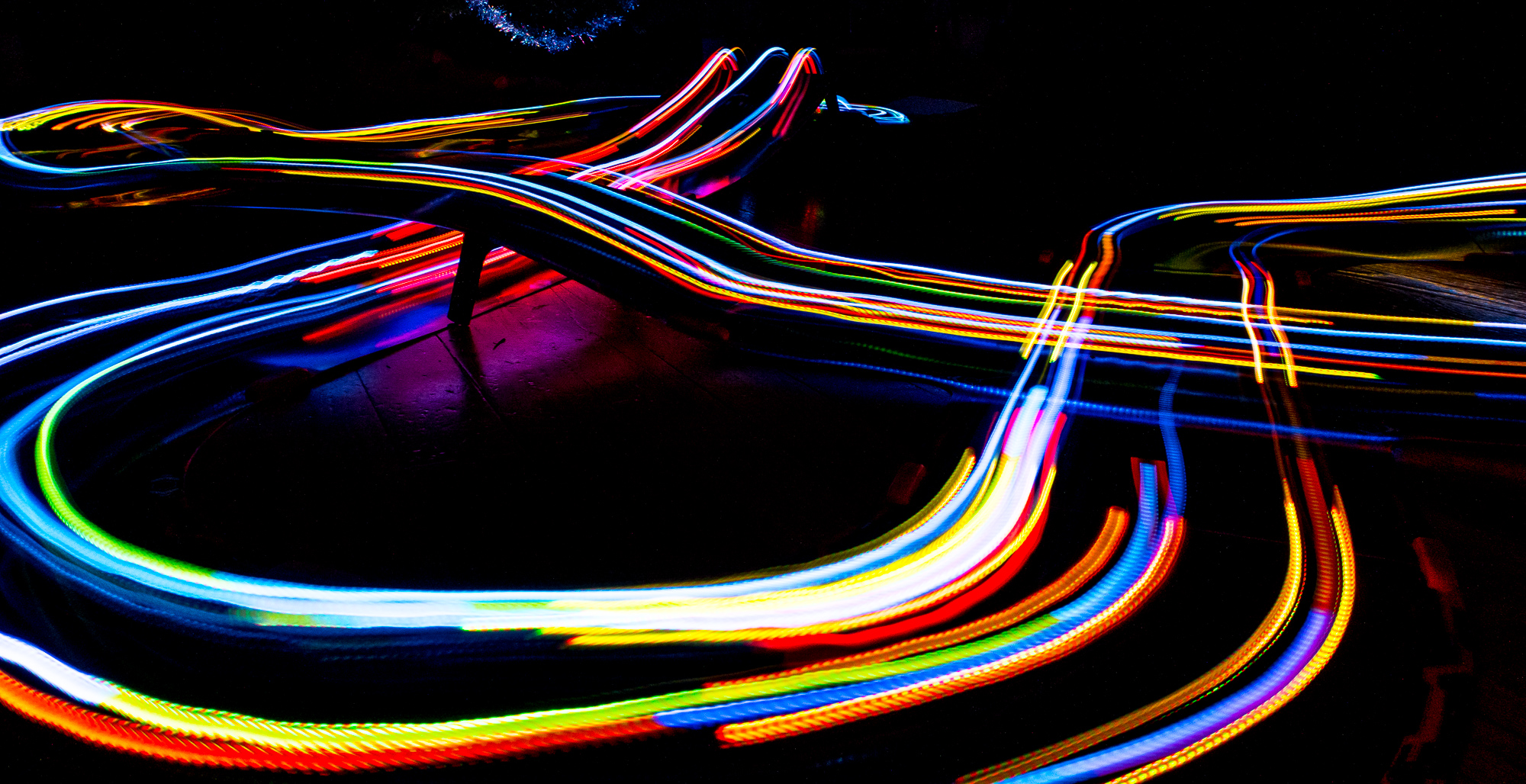 Anki OverdriveThen today - the other two parts of the order that were originally out of stock arrived - an extra corner kit and the launch kit (jump). Here we also used some of the elevation and bank kit parts to raise the tracks in a bridge and in a bank. I'd also worked out how to switch the cars into demo mode to get more varied light effects from them as well as reduced the exposure time - so they're a little less busy.