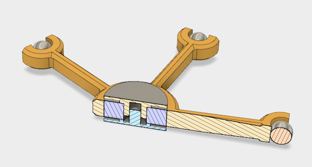 For the test I designed a simple 5 arm spinner in Fusion360. Space for a bearing in the center, and weights around the edge.