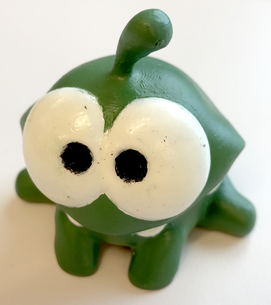 I grabbed Om Nom from thingiverse and printed it then primed it and painted it.
